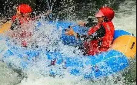 其實在上筏子的時候,身上的衣服就被濺起的水花打濕了,等一坐進橡皮筏,想不濕身已是不可能了。有的地方坡道很急,年齡小一點的“星二代”甚至被嚇哭,但順流而下聽到更多的是一聲聲飽含著興奮和刺激的尖叫聲和歡笑聲。有的橡皮筏遇到阻礙稍有停頓,就被沖下來的另一組橡皮筏沖撞,又繼續(xù)前進。有時候兩組人還互相打起了水仗,玩得不亦樂乎。